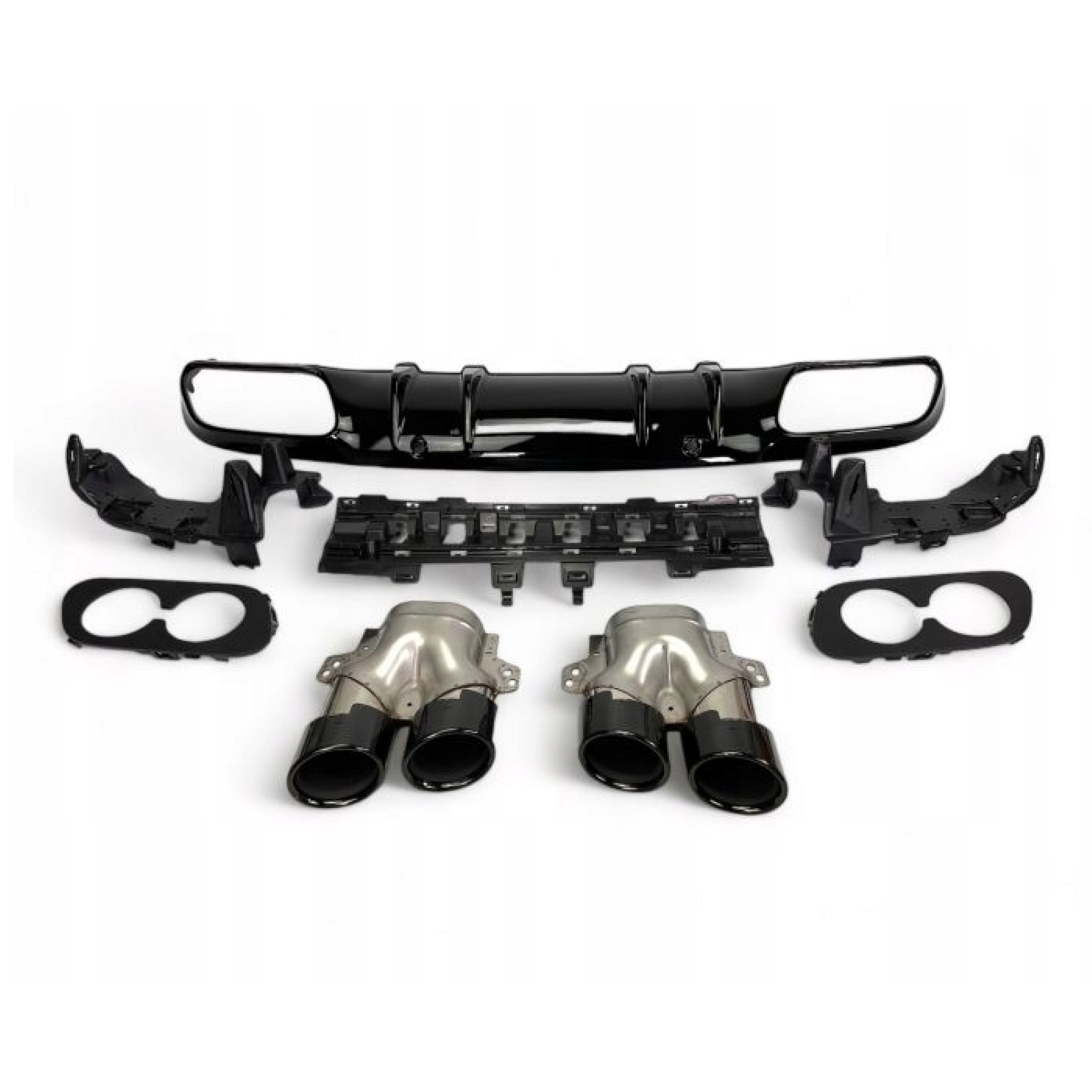 Dyfuzor Tylny + Końcówki Wydechu (Czarny) w Stylu C43 AMG do Mercedes W205 S205