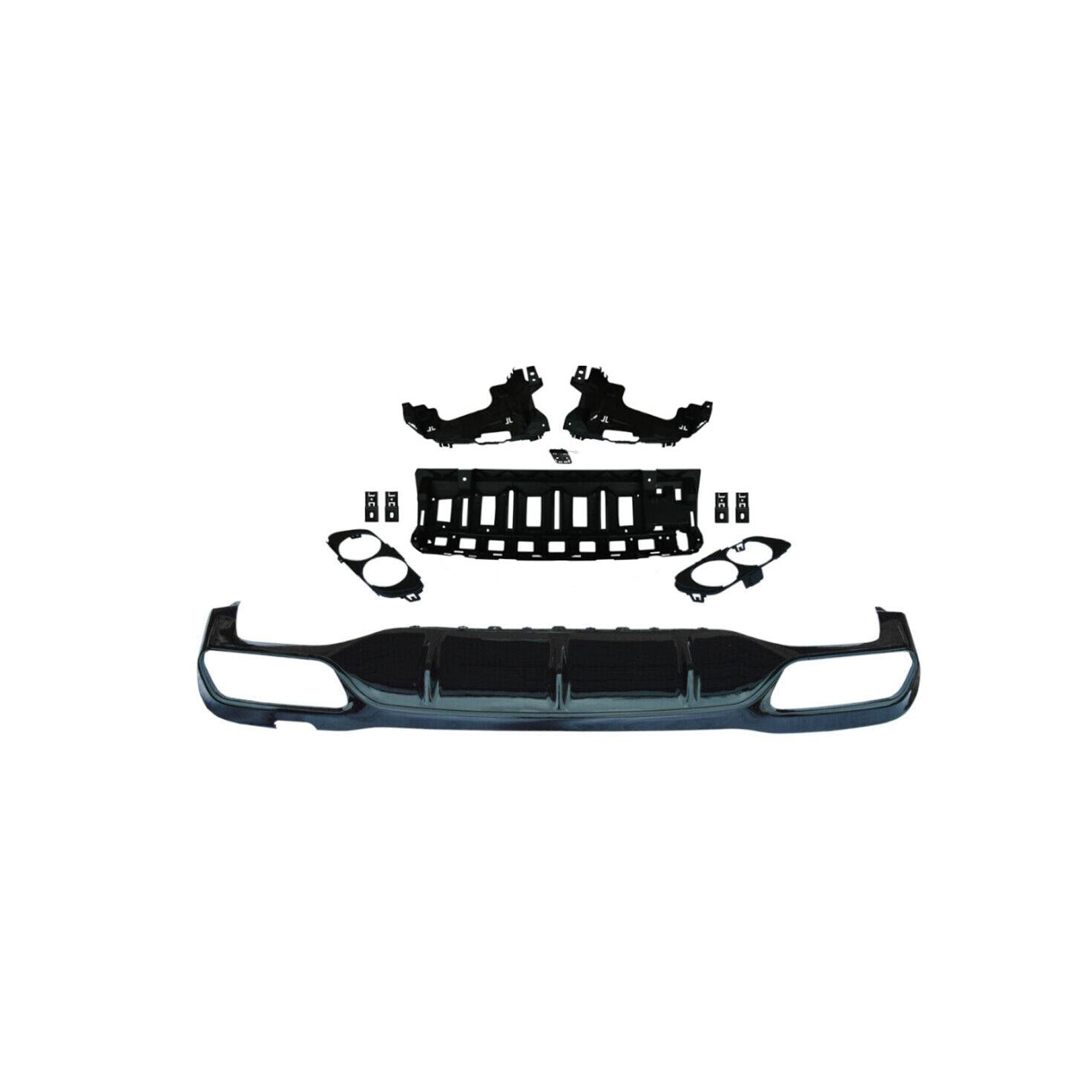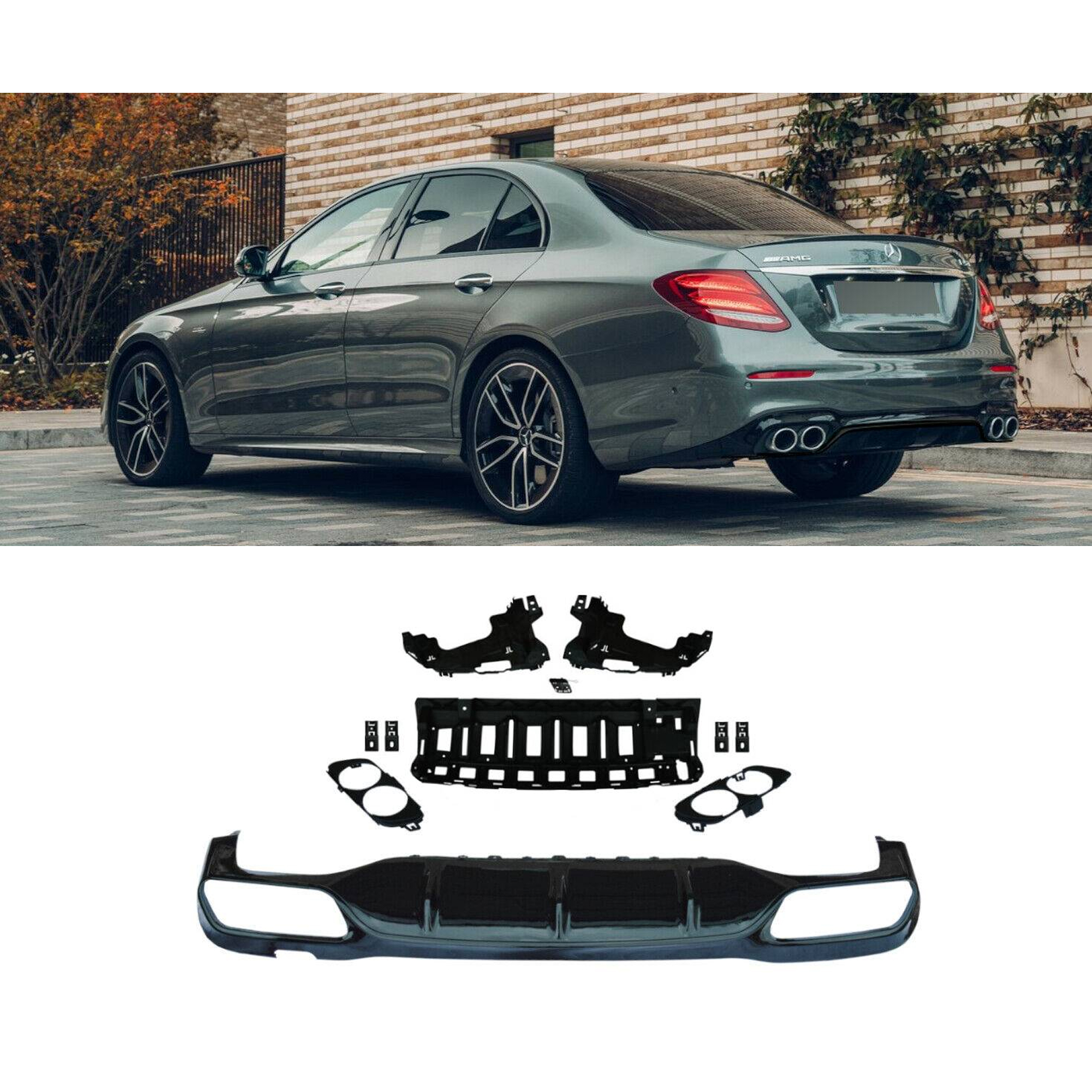Sportowy dyfuzor tylny w stylu AMG Look, przeznaczony do modeli Mercedes-Benz W213 E53 (2017+) z tylnym zderzakiem AMG. Wykończony w eleganckim kolorze czarny połysk z dekoracyjną czarną listwą, nadaje pojazdowi agresywny i luksusowy charakter.