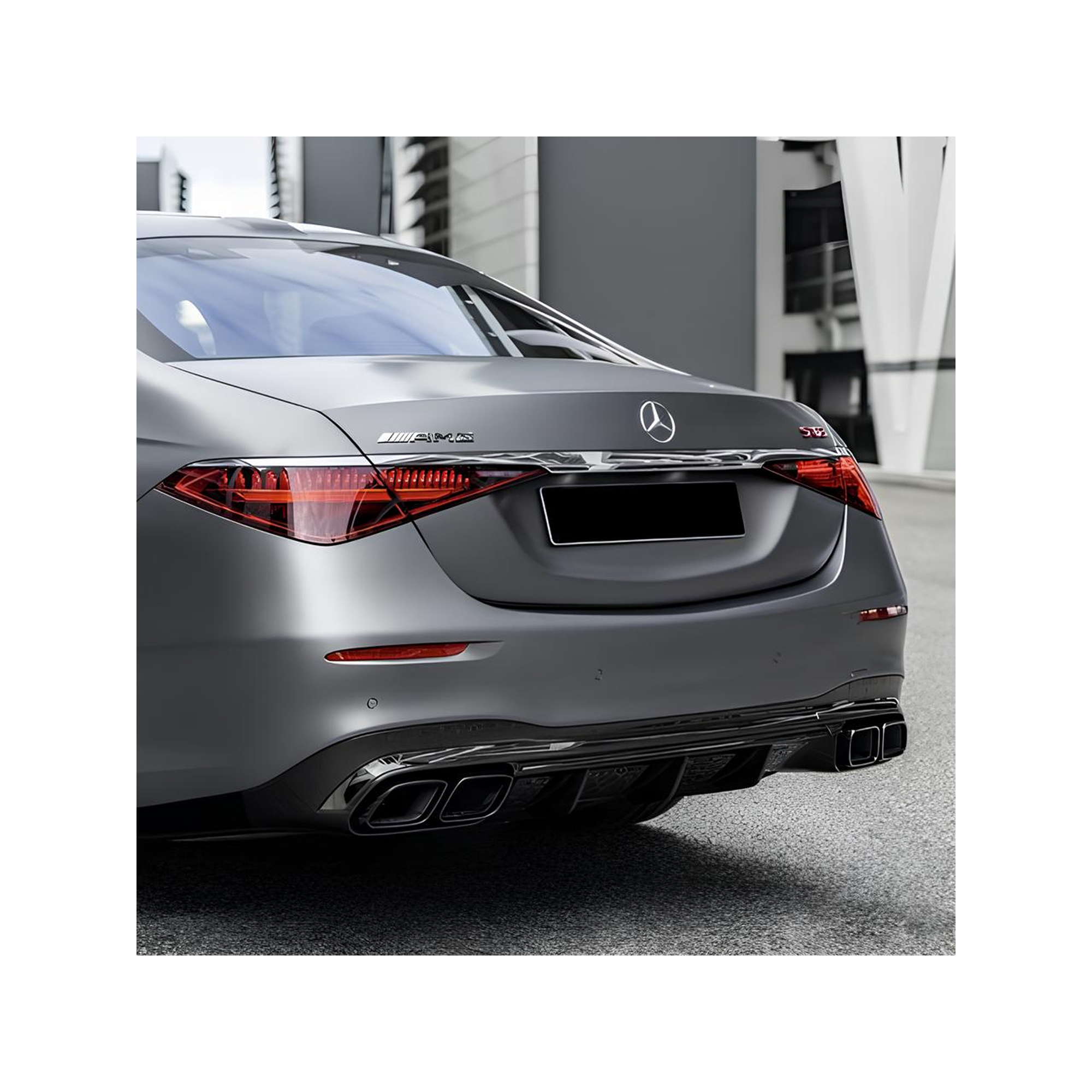 Ekskluzywny i sportowy dyfuzor tylny w stylu S63 AMG, przeznaczony do modeli Mercedes-Benz Klasy S W223 (2021+) z tylnym zderzakiem AMG-Line. Wersja wyposażona w zestaw końcówek wydechu AMG, które nadają pojazdowi wyjątkowo luksusowy, agresywny i dynamiczny charakter.