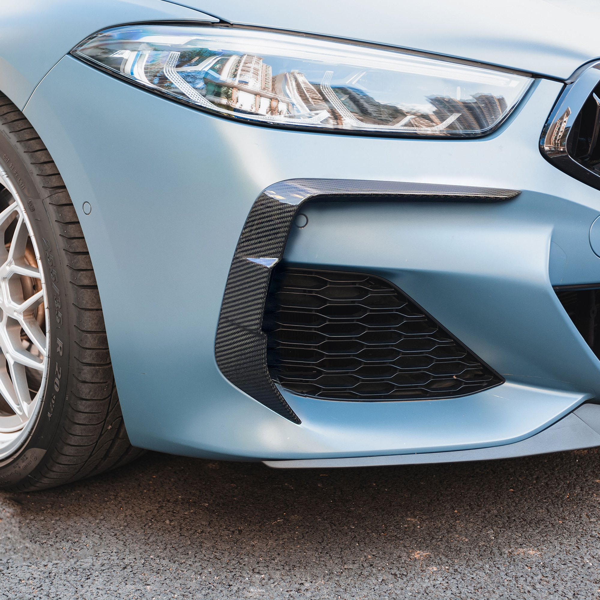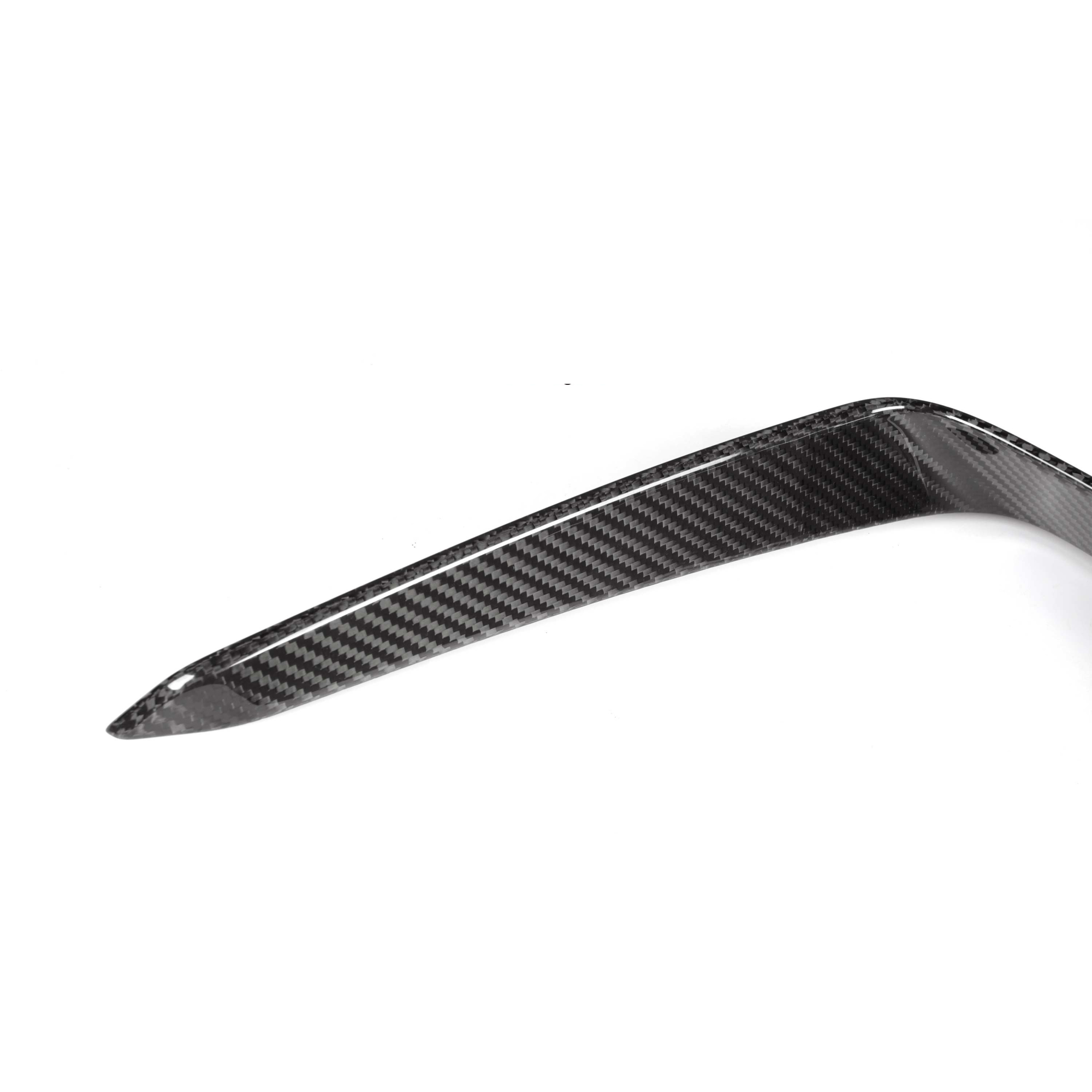 Wykonane z najwyższej jakości włókna węglowego, elementy idealnie dopasowują się do kształtu przedniego zderzaka, poprawiając aerodynamikę i nadając autu agresywny, nowoczesny wygląd. Karbonowa struktura gwarantuje wyjątkową trwałość przy zachowaniu niskiej wagi i perfekcyjnego wykończenia.
