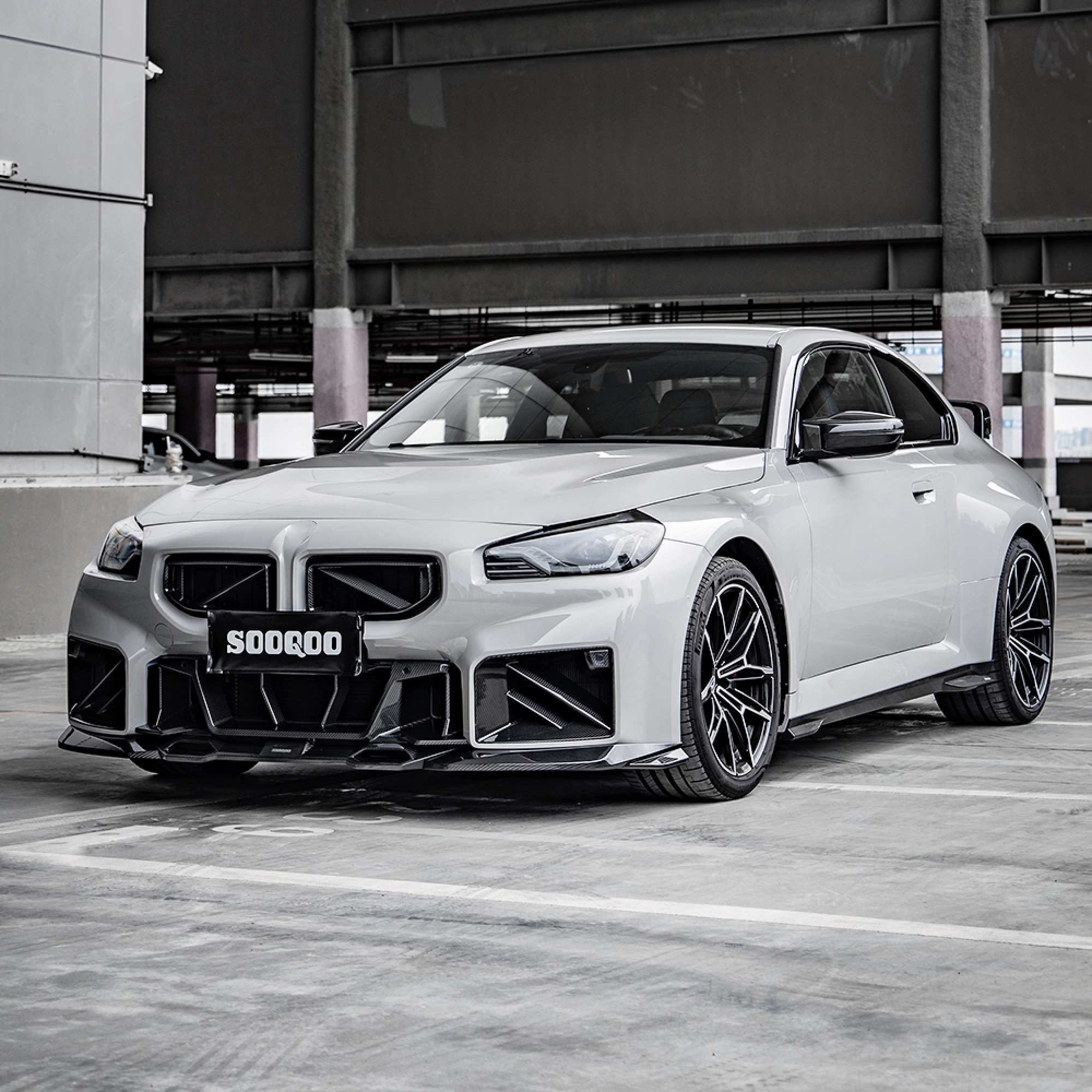 Wykonane z najwyższej jakości włókna węglowego, nasze wloty powietrza w stylu SQ zostały stworzone specjalnie dla BMW M2 G87 Coupe. Dzięki precyzyjnemu wykonaniu doskonale dopasowują się do przedniego zderzaka, nadając samochodowi agresywny i sportowy wygląd rodem z motorsportu.